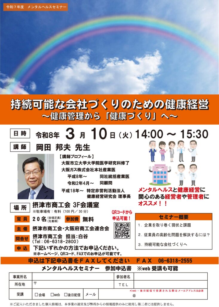 メンタルヘルスセミナー「持続可能な会社づくりのための健康経営」~健康管理から「健康づくり」へ~(3/10)