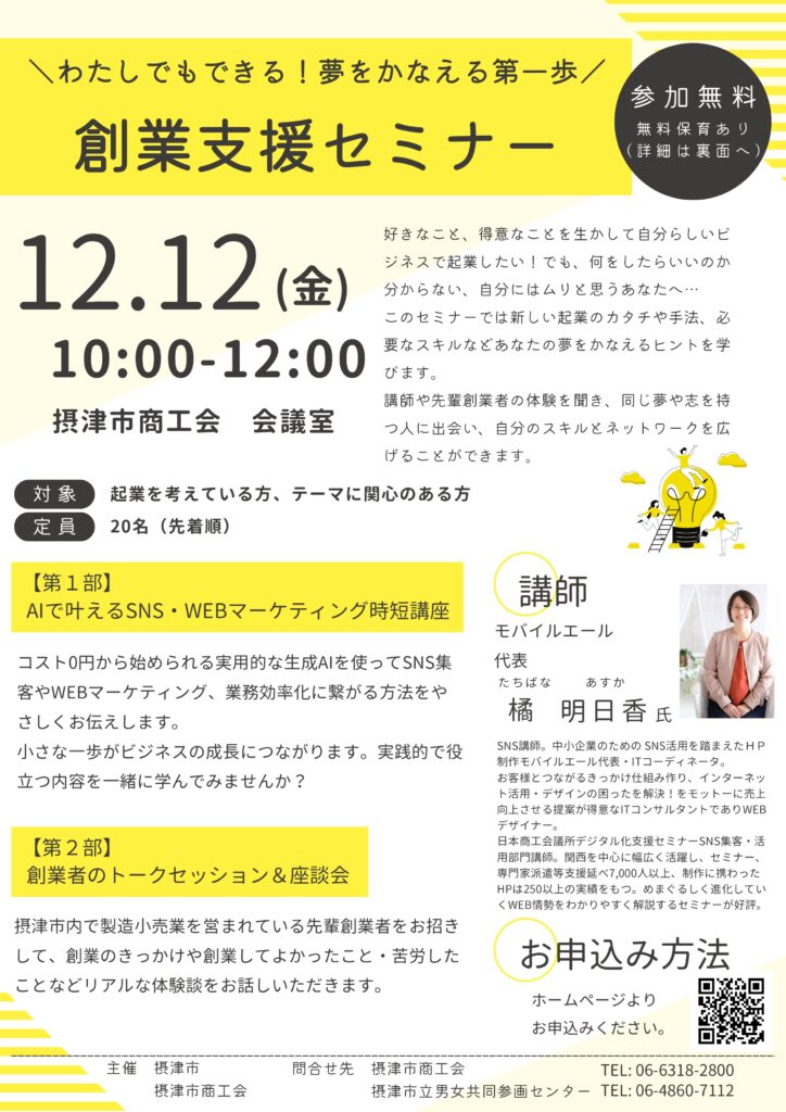 わたしにもできる! 夢をかなえる第一歩! 「創業支援セミナー」(12/12)