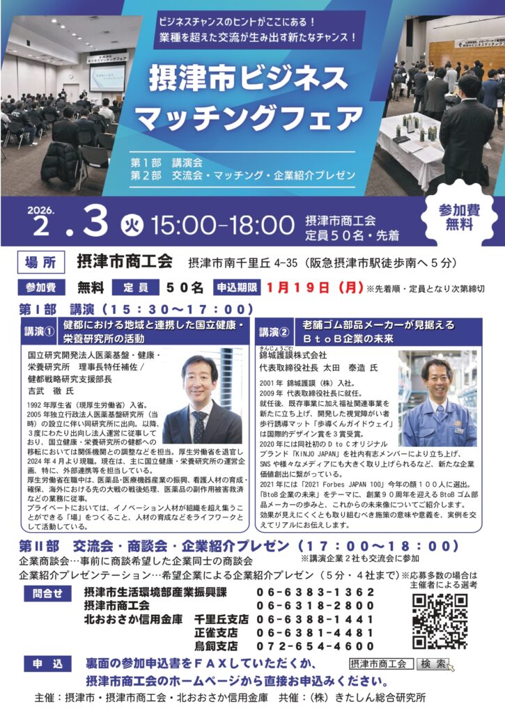 (2/3)ビジネスチャンスのヒントがここにある!業種を超えた交流が生み出す新たなチャンス!摂津市ビジネスマッチングフェア(申込締切:1/19)